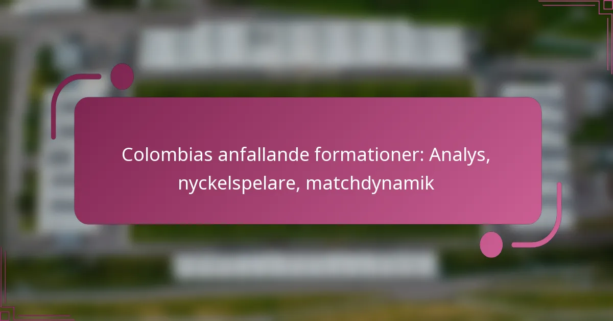 Colombias anfallande formationer, främst 4-2-3-1, 4-3-3 och 3-5-2, spelar en avgörande roll i att forma deras matchdynamik och övergripande prestation. Effektiviteten av dessa strategier beror på bidragen från nyckelspelare, inklusive skickliga anfallare och kreativa mittfältare, som anpassar sitt spel baserat på realtidsfaktorer som resultat och motståndarens taktik.