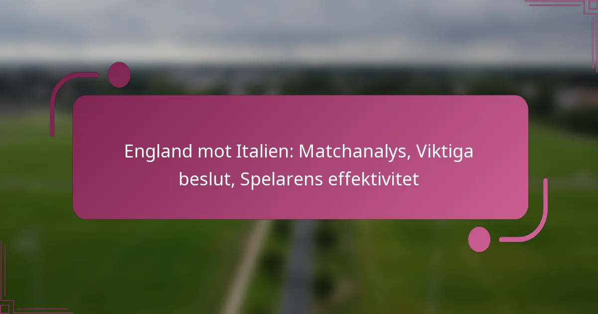 Matchen mellan England och Italien innehöll flera avgörande beslut som påverkade spelets utgång. Domarens beslut, tränarstrategier och byten spelade kritiska roller i att forma matchens dynamik och väckte betydande debatt bland analytiker.